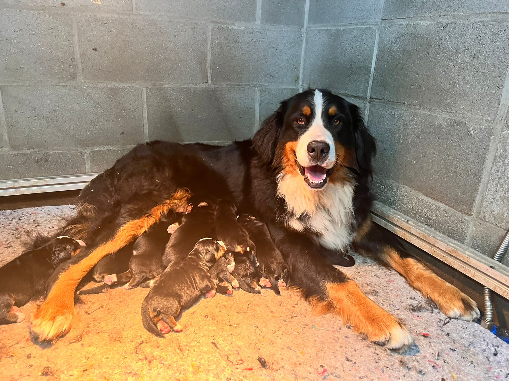 Er zijn bernersennenpups geboren reutjes en teefjes ,deze pups mogen het nest verlaten eind april .